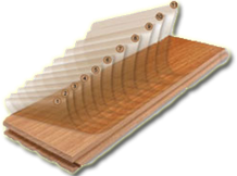 Engineered Wood Flooring - These floors are constructed from several wood plies that are glued together. The centre core is generally a softer wood material and is used to make the tongue and groove. A hardwood finish layer is glued on top of the centre core and another softer wood ply is attached underneath the core. This top ply is also called the finish layer and can be constructed of almost any wood specie.